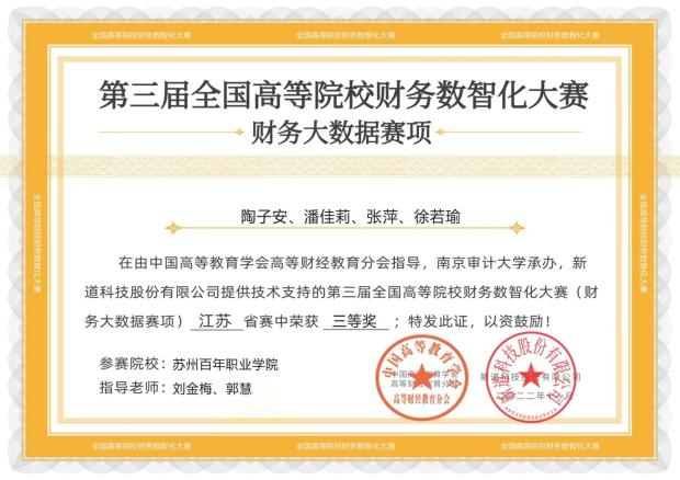 3+1专接本:专科期间,在永利官网校内同步完成苏州科技大学、南京财经大学、南京审计大学等永利官网对接本科院校相关专业的本科课程,待三年拿到专科文凭之后,一年内即可获取自考助学本科文凭,通过率超过90%。