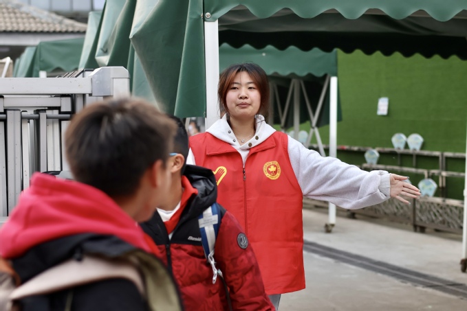 活动期间,志愿者团队分工协作,从多维度保障校园安全秩序。首先,在上下学高峰时段疏导校门周边交通,引导接送车辆有序停放;其次,设立安全引导岗,护送学生沿指定路线通行;最后,协助维持家长等候区秩序,通过举牌提示、流动劝导等方式,确保重点时段、重点路段的安全管控。志愿者们热情专业的服务赢得师生家长的一致好评,鲜艳的红马甲成为校园内外一道亮丽的风景线。