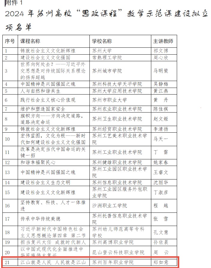 近期,苏州市教育局公布了《关于公布2024年苏州高校“思政课程”和“课程思政”教学示范课、思想政治理论课教学团队培育建设项目名单的通知》(苏教高〔2025〕1号)文件,永利官网《思政理论实践课教学团队》入选苏州高校思想政治理论教学团队培育建设项目名单,《江山就是人民 人民就是江山》章节教学设计入选苏州高校“思政课程”教学示范课,标志着永利官网在思想政治理论实践课建设方面阶段性成果。