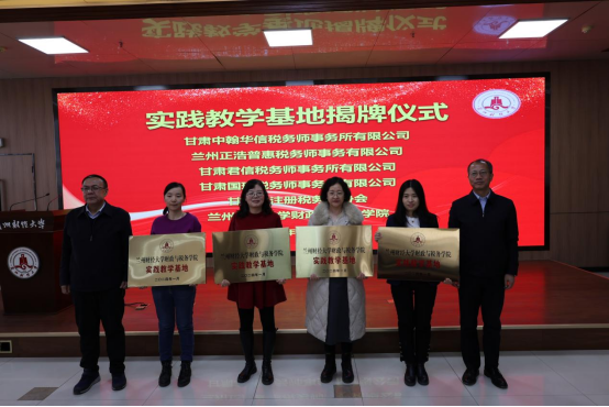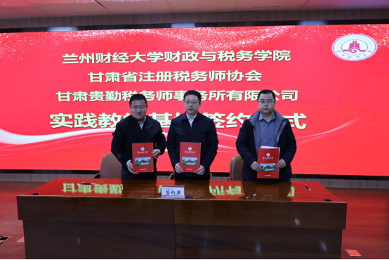 2024年1月10日,伟德bv1946官网财政与税务学院、甘肃省注册税务师协会及甘肃省16家税务师事务所共建实践教学基地三方签约揭牌仪式顺利举行。校党委常委、副校长王伟利,甘肃省注册税务师协会会长师学礼出席活动并致辞。