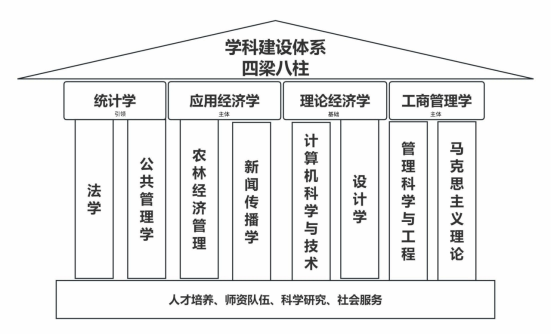 高位谋划明思路。确立学科专业建设整体思路,着力构建学校学科建设的“四梁八柱”。在充分发挥统计学引领作用,应用经济学和工商管理学主体作用和理论经济学基础作用的同时,积极促进多学科专业协调发展。