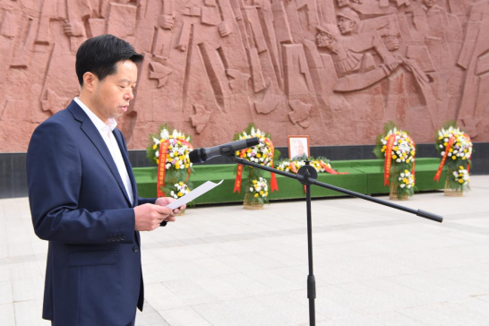 上午9时,全体与会人员集聚在西安烈士陵园烈士浮雕纪念墙广场举行祭奠仪式。薛君代表学校深情宣读祭文,深切悼念他为陕甘宁边区财政经济工作和教育文化事业前赴后继、英勇斗争的一生。