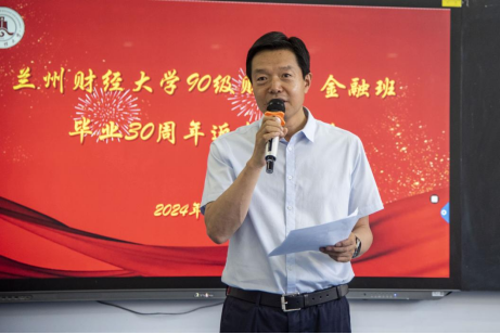 薛君发表了热情洋溢的致辞,他代表学校对校友的到来表示欢迎和感谢,为校友之间浓浓的情谊及对母校深深的眷恋感到欣慰,为校友在工作中取得的优异成绩感到骄傲,为兰财人感到幸福。他介绍了学校的发展历程、现状以及学校所取得的各项成就!并希望校友们加强交流互动,凝心聚力共谋发展,助力学校纵横知行勇攀高峰。