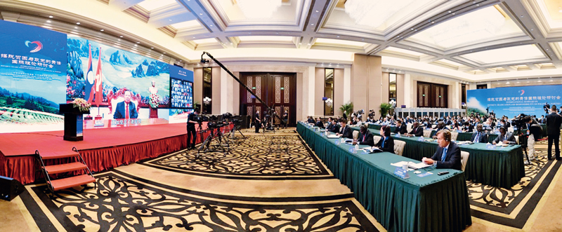 2020年10月12日至13日,由中共中央对外联络部和中共福建省委共同主办的“摆脱贫困与政党的责任”国际理论研讨会在福建举行。中共中央总书记、国家主席习近平向会议致贺信,来自100多个国家的约400位政党代表和驻华使节、国际机构驻华代表、发展中国家媒体驻华代表、智库学者等通过线上或线下方式参会。中联部供图