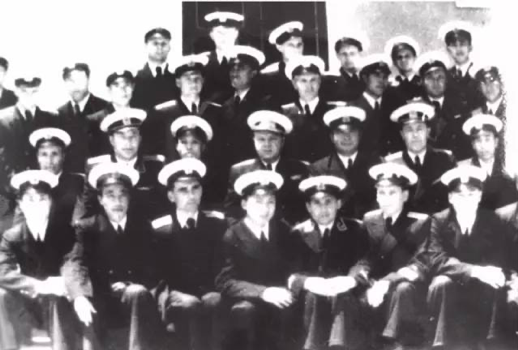 △上世纪五十年代初,中国海军潜艇学习队部分人员与苏联教官合影