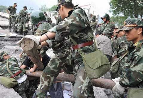 △解放军官兵迅速抵达汶川地震灾区