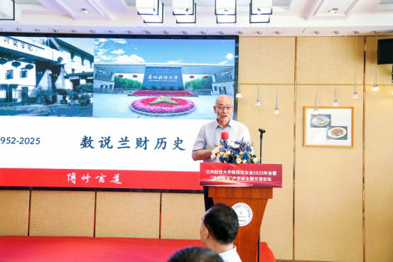 梁亚民以学校发展历程、标志性成果等各项数字统计为主题,为在场校友作了《数说兰财历史》的现场分享。